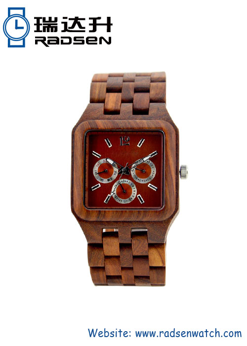 Natural Wood Chronos Watches Square Face in Wine Red Color are the chronos watches. The square face watches are vintage and elegant And Watch faces are with chronograph dials. Japanese movements are used to guarantee this natural wood watches be high quality. UP index marks are applied to this wooden face watches.